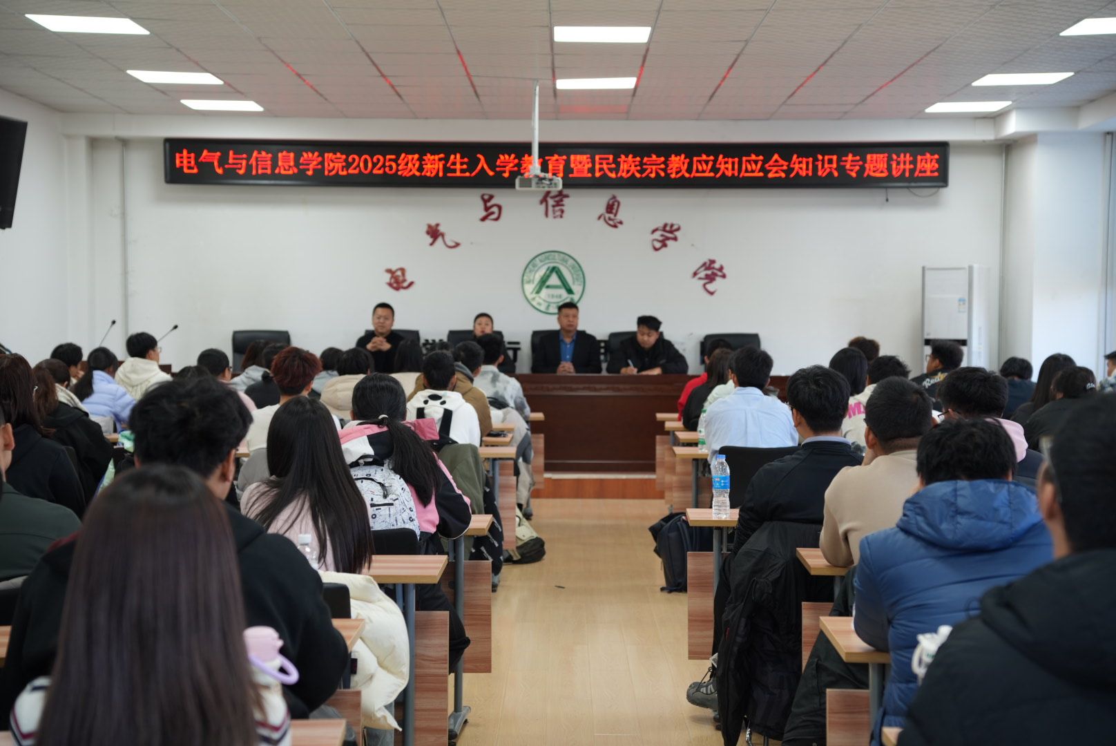 为帮助2025级新生尽快适应大学环境,树立正确的世界观、人生观和价值观,同时增强对民族宗教政策的了解,铸牢中华民族共同体意识,10月21日,电气与信息学院举行2025级...