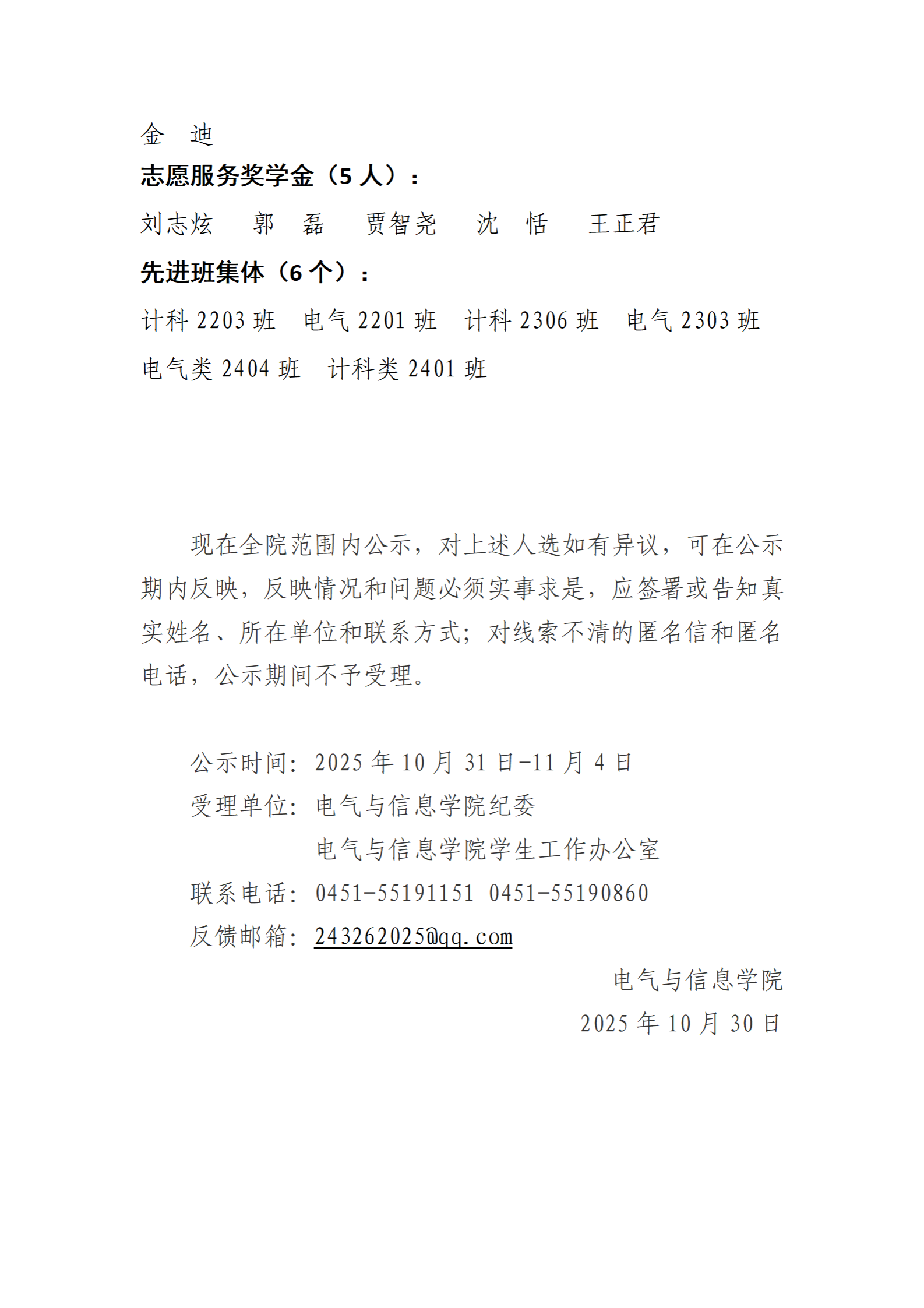 上一篇:电气与信息学院拟推荐2025年黑龙江省普通高等学校“三好学生”公示